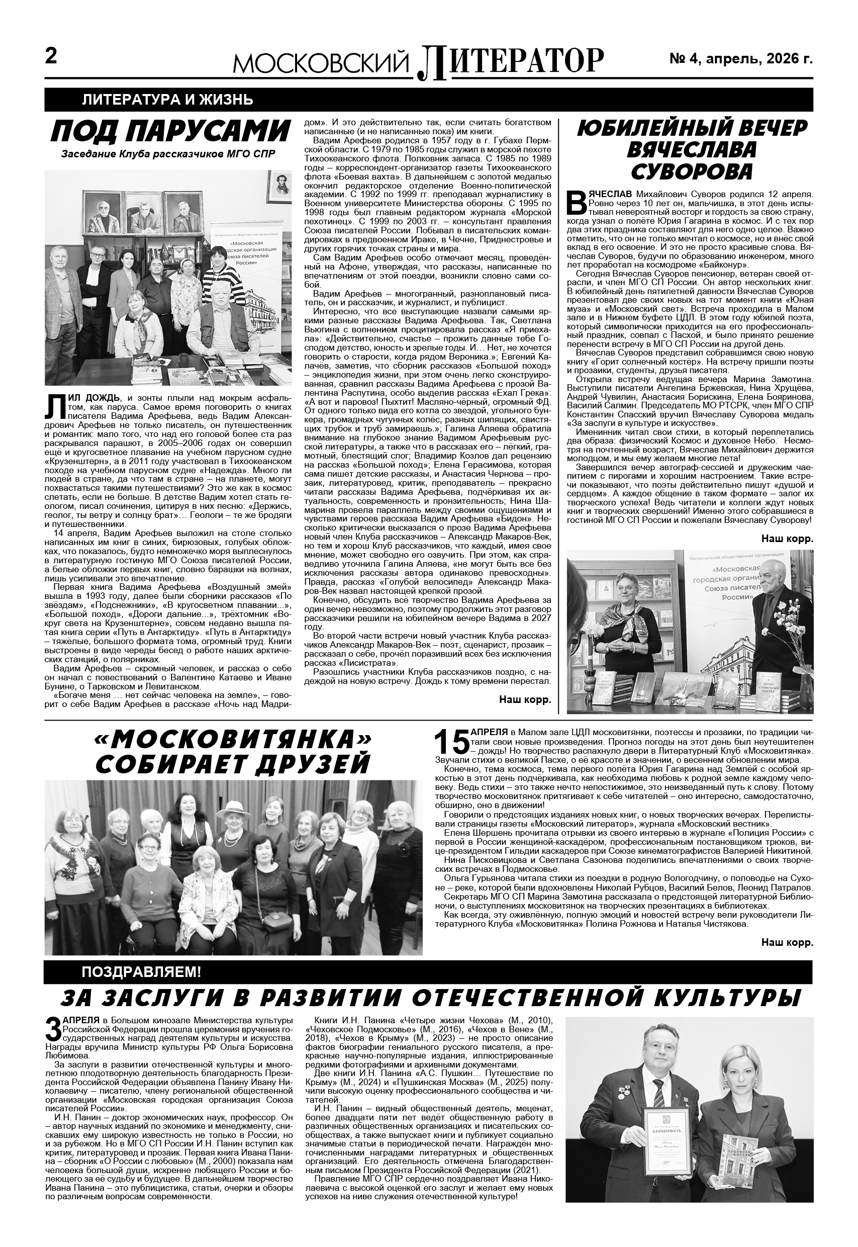 Говорили о предстоящих изданиях новых книг, новых творческих вечеров. Перелистывались страницы газеты «Московский литератор», журнала «Московский вестник».