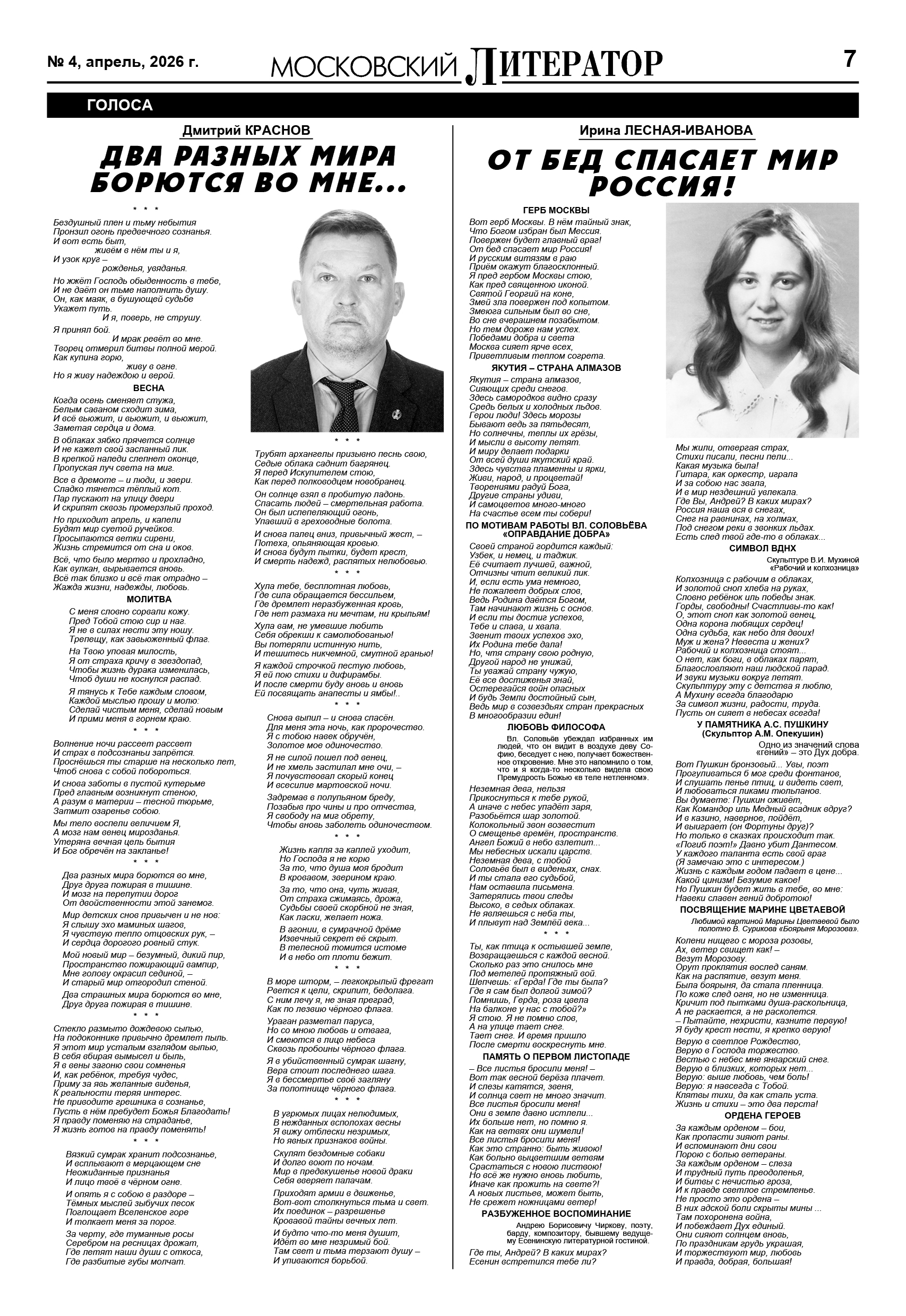 По традиции 15 апреля в Малом зале ЦДЛ московитянки, поэтессы и прозаики, читали свои новые произведения! Прогноз погоды на этот день был неутешителен – дождь! Но творчество распахнуло двери в Литературный Клуб «Московитянка». Звучали стихи о великой Пасхе, о её красоте и значении, о весеннем обновлении мира. Конечно, тема космоса, тема первого полёта Юрия Гагарина над землей – с особой яркостью в этот день подчёркивала, как необходима любовь к родной земле каждому человеку. Ведь стихи – это также нечто непостижимое, это неизведанный путь к слову. Потому творчество московитянок притягивает к себе читателей, оно интересно, самодостаточно, обширно, оно в движении!