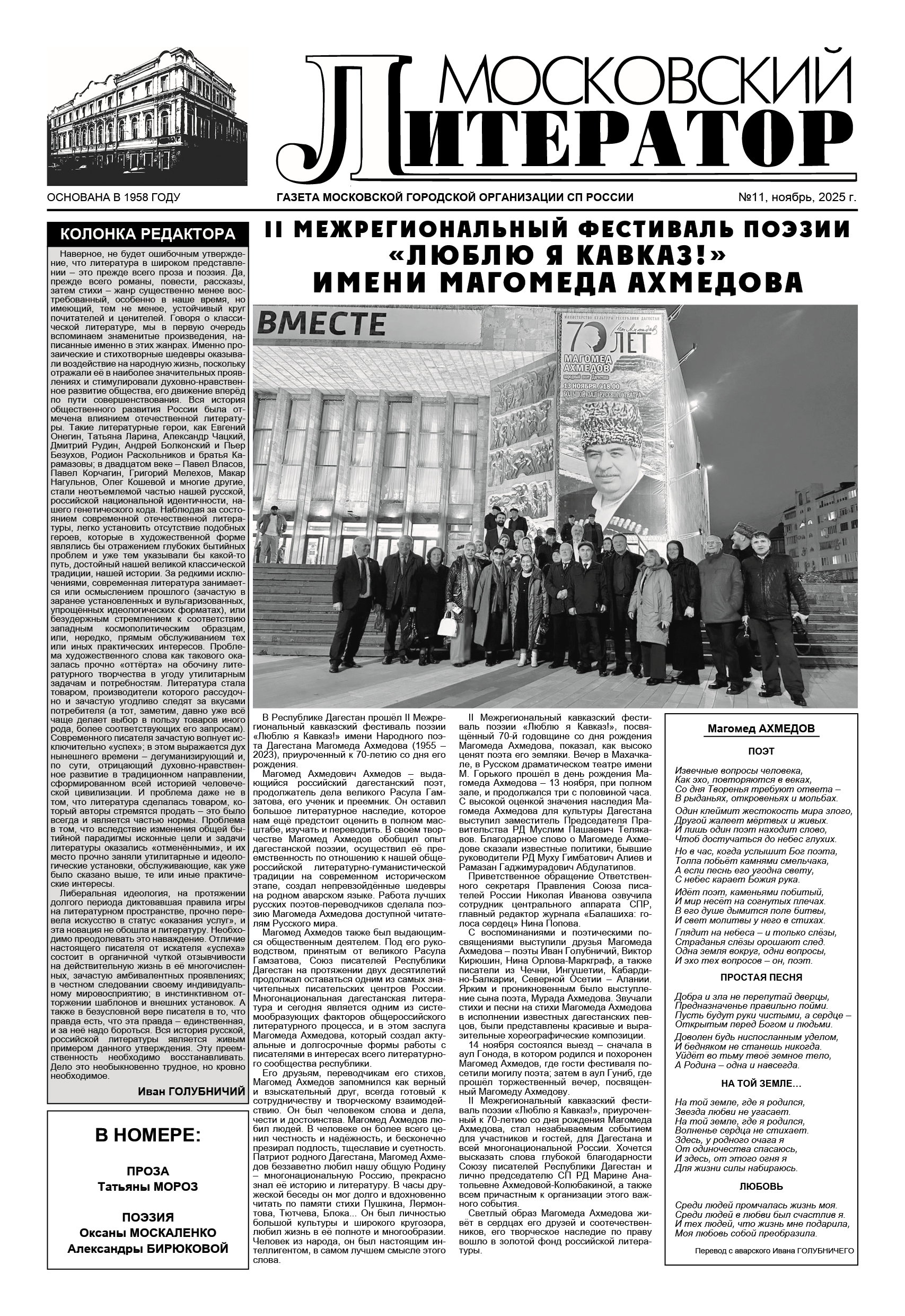 Организованная и слаженная работа собрания стала свидетельством того, что Московская городская организация Союза писателей России, представляющая ведущих мастеров художественного слова, занимает активную гражданскую и творческую позицию и готова к вызовам современности.