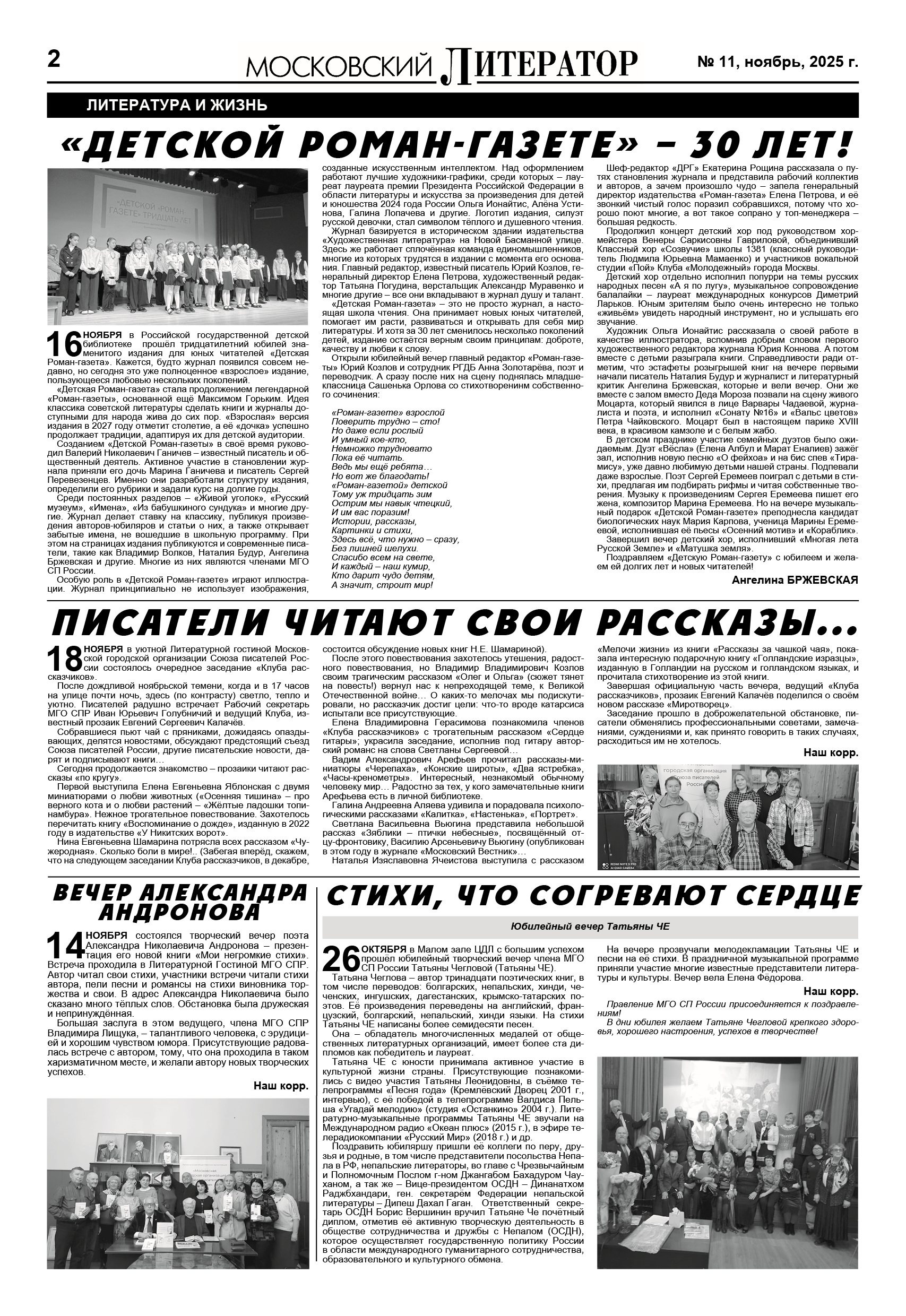 26 октября в Малом зале ЦДЛ с большим успехом прошёл юбилейный творческий вечер члена МГО СП России Татьяны Леонидовны Чегловой (Татьяны Че).